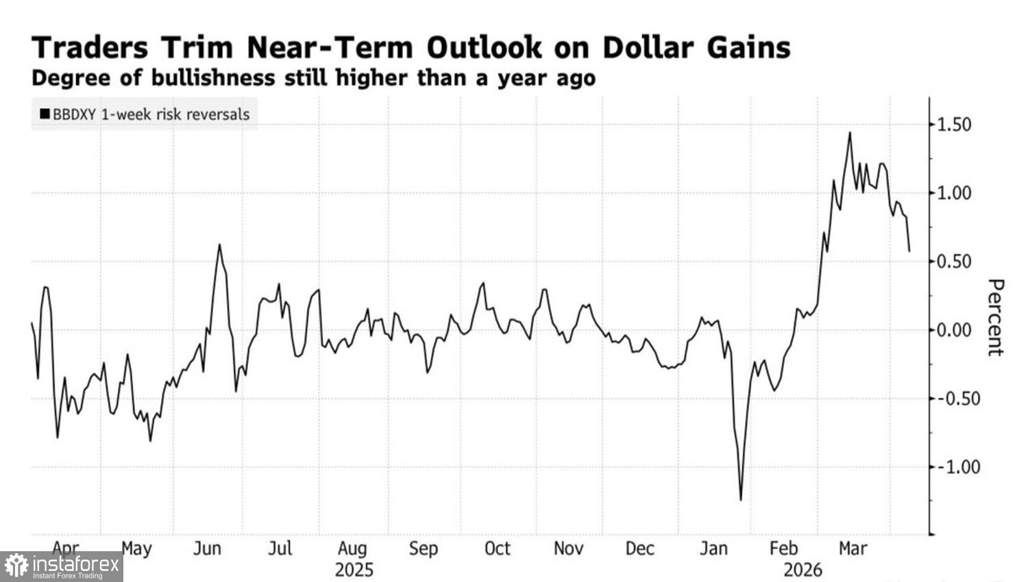 На таком фоне резко выросшие с января по март риски разворота по доллару США ушли вниз. Тем не менее, все еще остаются на уровнях, существенно более высоких, чем в начале года.