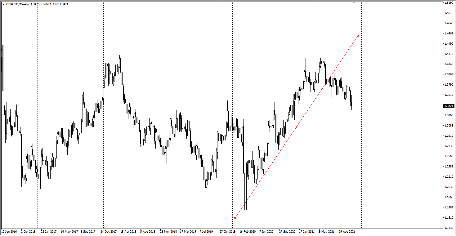 Selama periode support garis tren naik ditarik melalui titik terendah dari diagram; selama periode resistance dari garis tren turun ditarik melalui bagian atas . Kelanjutan dari tren ini membantu memperkirakan pembelian/penjualan harga untuk periode mendatang. Karakteristik paling penting dari garis tren adalah nilai sudutnya. Ini menunjukkan dorongan dominan dari pasar.