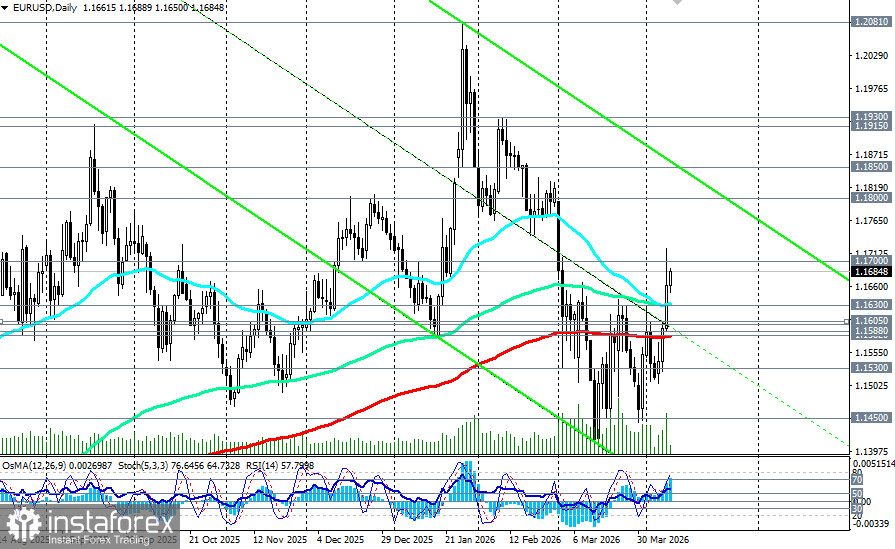 Сценарий Б (медвежий для EUR/USD): возврат ниже 1.1630 (ЕМА144 на дневном графике)